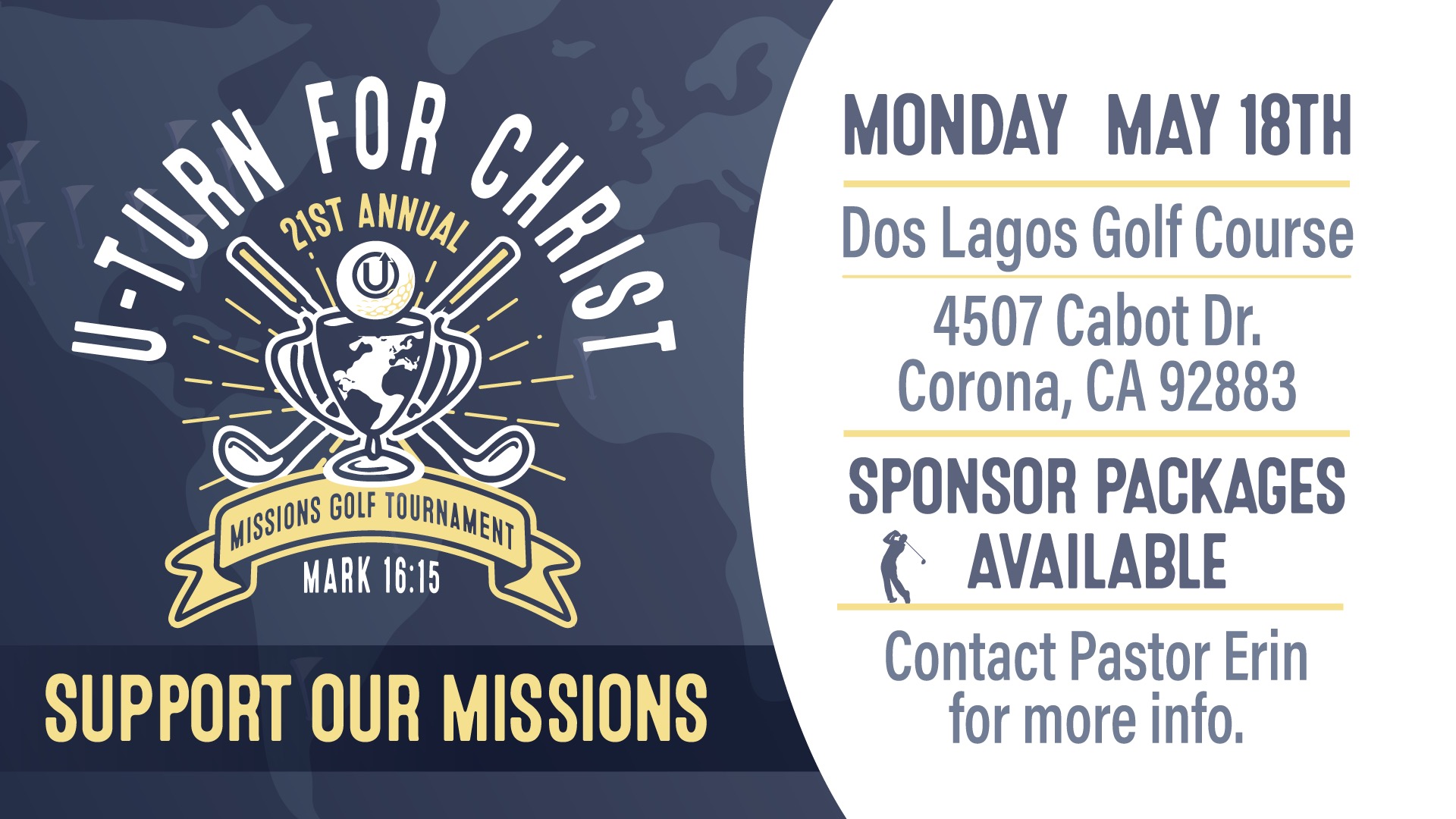 Join us on May 18th for our 21st Annual U-Turn For Christ Missions Fundraiser Golf Tournament. The tournament fee is $200 per golfer, with Sponsor packages starting at $800. Sponsor registration ends April 1st, and individual registration closes on April 24th. There is limited space for 144 golfers, so sign up today to support our missionaries worldwide.